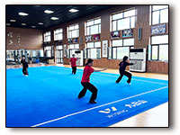 その夜、メインの立派な体育館「八極拳展演舘」を呉連枝老師自ら案内してくださいました。その後、なんと老師の三輪車の後ろに乗せてもらって宿舎まで送って頂くという信じられない体験をさせていただきました。世界的に有名な呉連老師は、もの凄く優しく、ユーモアがあって、どこか可愛く感じました。