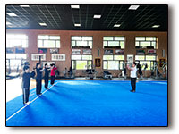 食後はご自宅でお茶をいただき、呉老師自らが自転車で体育館まで案内してくださり、広場での夜の練習風景を見学。広場には小学生くらいの若い方から大人の訓練生が熱心に練習されており、その真剣な姿に胸を打たれました。孟村では、1日中八極拳が本当に生活の一部なのだと感じました。呉老師と見慣れない来客に驚かれたはずですが、呉老師が広場をくるくるとにこやかに快走されているのが分かると、すぐに和やかな空気に変わりました。