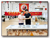 また、呉老師が一人ひとりに書をしたためてくださり、美しく力強い筆の動きに、一瞬一瞬に魂が込められているようでした。その様子を、順番を待つ若い訓練生も静かに見守ってらっしゃいました。これも上から下まで技と心を伝える孟村らしい文化だなと思いました。