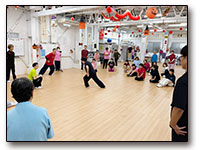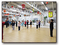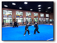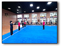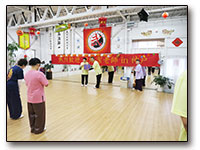 食後はご自宅でお茶をいただき、呉老師自らが自転車で体育館まで案内してくださり、広場での夜の練習風景を見学。広場には小学生くらいの若い方から大人の訓練生が熱心に練習されており、その真剣な姿に胸を打たれました。孟村では、1日中八極拳が本当に生活の一部なのだと感じました。呉老師と見慣れない来客に驚かれたはずですが、呉老師が広場をくるくるとにこやかに快走されているのが分かると、すぐに和やかな空気に変わりました。