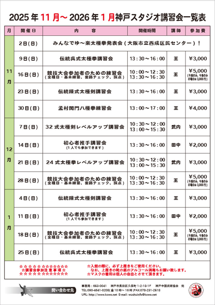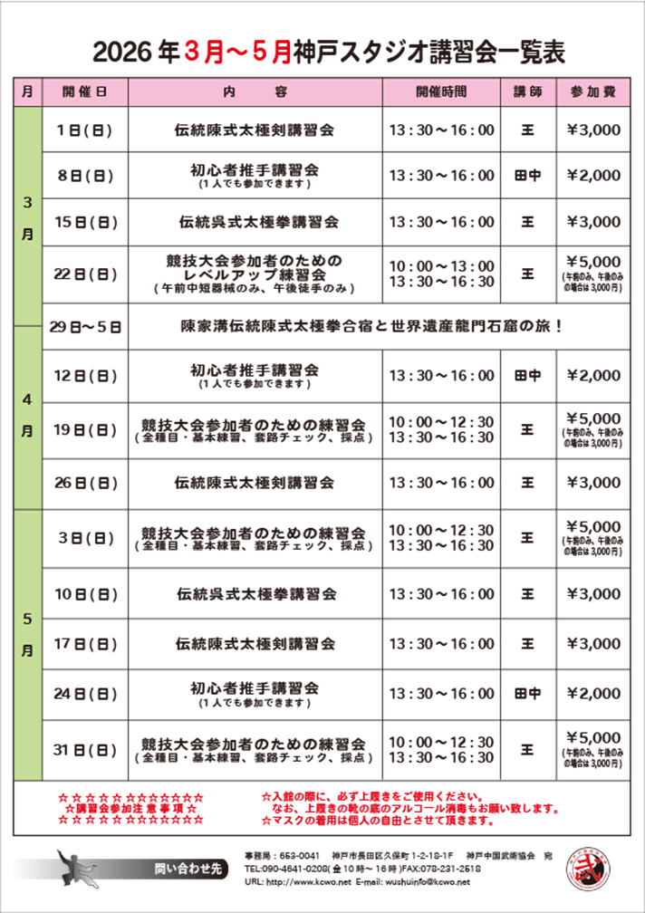 | JR「新長田駅」南側出口を出て、駅前広場を左へ進みロータリーを越えてすぐ右折。まっすぐ歩いて、長田消防署の信号横断歩道で国道を南へ渡り、左折。右手の本町筋商店街を通って、神戸協同病院を左へ。真っ直ぐ歩いて一つ目の交差点を越えて、「大久」看板東隣の建物「太極拳健康体操教室」1階です。 |